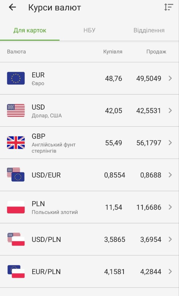 Государственный ПриватБанк также обновил курс валют на 26 ноября: