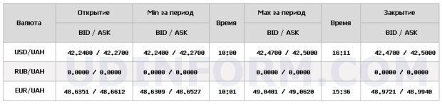 - доллар США: покупка – 42,05 грн, продажа – 42,5531 грн.